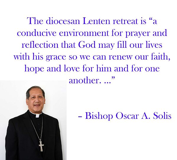 The diocesan Lenten retreat is “a conducive environment for prayer and reflection that God may fill our lives with his grace so we can renew our faith, hope and love for him and for one another. This is a special moment to once again focus all our attention to God by turning away from sin and returning to him with all our hearts,” he said.