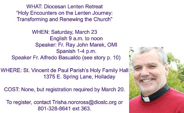HOLLADAY — With the theme “Holy Encounters On The Lenten Journey: Transforming and Renewing the Church,” the Diocesan Lenten Retreat has been scheduled for March 23.