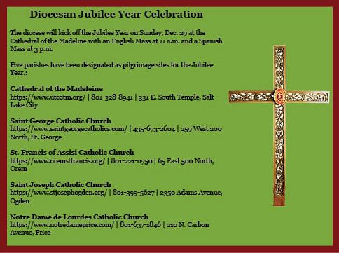 The Diocese of Salt Lake City will join the worldwide celebration of the opening of the 2025 Jubilee Year on Sunday, Dec. 29. In Utah, the Cathedral of the Madeline will celebrate with a special procession at the 11 a.m. Mass in English and the 3 p.m. Mass in Spanish.