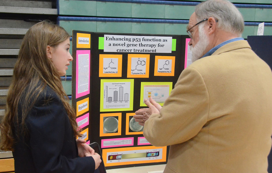 DRAPER — Zach Shubella and Mariah Trujillo won top honors at the 17th annual Knights of Columbus sponsored Diocesan Science Fair held at the Skaggs Catholic Center Feb. 23. Shubella, a seventh-grader at J.E. Cosgriff Memorial School, received the Young Scientist of the Year award and Mariah Trujillo, a sixth-grader at Saint Francis Xavier School, received the award for the Overall Best Physiology Project. Shubella came up with the idea for his project, "The Big Chill," because his family subscribes to a cooking magazine. He wanted to find the quickest method to freeze a sparkling beverage in a glass bottle. "Using five different methods, I found that a salted ice bath was the fastest, whereas the magazine stated wrapping the bottle in a wet towel and placing it in the freezer was the fastest," said Shubella. Shubella said the science fair was a good experience and helped him "learn how to speak to people and explain my project," he said. Shubella also won the Overall Seventh Grade award and the Overall Physical Science award. The Overall Best Physiology award is sponsored by Dr. Daniel Malleske of the American Physiological Society, a Knight of Columbus and professor of neonatology at the University of Utah. Trujillo, who won the award, wants to be a veterinarian, so she based her project on dog behaviors. She looked at the physiology of the structure of dogs’ eyes and why they tend to prefer blue and yellow colored treats over red and green. She determined that the structure of their eyes makes them more likely to choose those colors. "In the back of a dog’s eye in the retina there are two different kinds of photo receptors: cones and rods," said Trujillo. "Cones are sensitive to color and detail and rods are sensitive to motion, changes in color and light. In a human there are three sets of cone receptors; whereas, in a dog’s eye there are only two sets of cone receptors so they have a limited color spectrum compared to a human." Trujillo made her own yellow, red, blue and green treats so they would taste and smell the same and set them on yellow, red, blue or green pieces of paper and made sure that every dog had a new piece of paper, so they could not smell another dog. Trujillo tested 17 dogs; "nine chose blue and yellow and eight chose red and green," Trujillo said. "I thought since some of the dogs were older than 4 years and couldn’t see as clearly, sI added green, since it was a combination of blue and yellow, then 12 of 17 dogs chose blue, yellow and green. The dogs came from the Humane Society and were various breeds and sizes." This year saw 231 projects entered in the fair; 45 of the participants and six Juan Diego Catholic High School participants qualified for the upcoming Salt Lake Valley Science and Engineering Fair in March. The SLVSEF includes students in fifth through twelfth grades from the Canyons, Granite, Murray, Park City, Salt Lake, Tooele school districts, as well as the Diocese of Salt Lake City, said science fair co-coordinator Jim Larson, Cosgriff math and science teacher. "We became a qualifying fair last year, and if the students are successful at the SLVSEF, they can go on to compete on a regional and national level," said Larson. "The research that these student-scientists are doing represents the pinnacle of their science experiences. These are student-driven projects and it is a key part of their science education. As our science fair strengthens, it is a reflection of the strengthening curriculum in all of our schools." Last year the students did so well at the SLVSEF that the diocese was given five additional positions this year, said Vicky Simpson, Saint Francis Xavier math and science teacher, and co-coordinator of the fair. "We were able to include the sixth grade level this year," she said. "We heard only good comments from the judges; they are continually impressed by the quality of projects that our middle schools present."