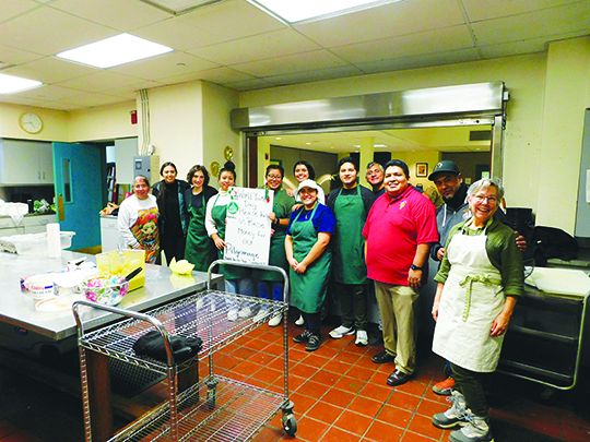 For the fundraiser, the youth carried all the supplies into the cathedral’s basement kitchen and prepared the food, while Gazani and Palestino prepared a table and set up a cash register.