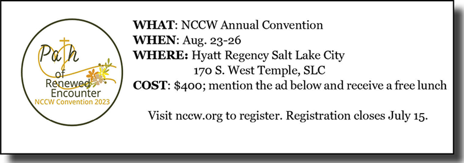 SALT LAKE CITY — The National Council of Catholic Women will hold its annual convention in Salt Lake City, Aug. 23-26. In keeping with the Church’s three-year Eucharistic Revival, the convention has the theme of “Path of Renewed Encounter.” More than 400 Catholic women from across the country are expected to attend; they will focus on the Eucharist and how to encounter Christ in everyday life.