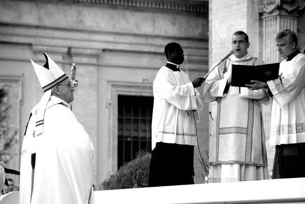 VATICAN CITY — On March 31, Easter Sunday, Deacon Christopher Gray, who will be ordained a priest for the Diocese of Salt Lake City on June 29, proclaimed the Paschal Kerygma to Pope Francis at his Mass in St. Peter’s Square. After proclaiming a similar message to the thousands gathered in the Square and beyond, he turned toward the Pope and chanted, "The Lord is risen indeed, and has appeared to Simon." At least a thousand years old, this ritual of the papal liturgies disappeared during the papal sojourn in Avignon but was restored in 2000 under Blessed John Paul II; it has been used ever since in the Paschal Masses of Pope Benedict XVI and now Pope Francis. After proclaiming, Deacon Gray handed the book of the Gospels to the Holy Father for him to kiss it and then bless the people with it, a common rite with bishops’ Masses. "It has been an honor for me to be able to serve as deacon for papal liturgies in two pontificates," Deacon Gray said. "Although they are different people, both Pope Benedict and Pope Francis are clearly men of prayer and faith, and being able to serve their Masses as a deacon has given me a clear perspective of this truth. This in turn is a reminder that the Church, though made up of individuals, is the same Body of Christ yesterday, today and forever. As I make my final preparation for priestly ordination, now fewer than 90 days away, I am inspired by the example of these popes just as I have been by other priests I have known, as well as by the holy men and women that form the richness of the Church throughout history."