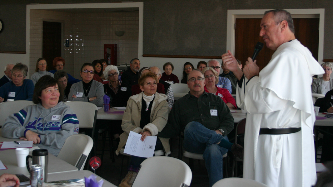 SALT LAKE CITY — In this Year of Faith, parishioners from throughout the Diocese of Salt Lake City were given an opportunity to deepen their relationship with Jesus Christ and to recognize that this relationship is the core of their faith at the diocesan Lenten retreat held at Saint Vincent de Paul Catholic Church March 1. The English-speaking retreat was presented by Dominican Father Wayne Cavalier, Ph.D, director of the Congar Institute for Ministry Development in San Antonio, Texas. He has been a frequent presenter in the diocese since 2007 for spiritual formation, enrichment and guidance. The Year of Faith, declared by Pope Benedict XVI to run from last October to this coming November, recognizes the 50th anniversary of Vatican Council II and the 20th anniversary of the publication of the "Catechism of the Catholic Church." Also, "they are put together in the theme of the ‘new evangelization,’ which is really about living in a new day and a new time," said Fr. Cavalier. "And what ties all of this together is the Holy Spirit – the breath of life." "God is relationship. It is like a triptych, or three panels put together: creation, the anointing of Jesus in the temple and Pentecost." The new evangelization isn’t new, just a new way of thinking about how to approach the mission, said Fr. Cavalier. "Vatican II recognized that all of the baptized are called to ministry and to participate in the mission of the Church." Quoting Pope Emeritus Benedict XVI, Fr. Cavalier said that ‘lay people are co-responsible for the being and activity of the Church.’ "We learn from Revelation that God is community and the very foundation of God is relationship: Father, Son and Holy Spirit," said Fr. Cavalier. "God created us out of love to be in relationship with him. He gave us the gift of the Holy Spirit. "God loves us and created us for himself," Fr. Cavalier said. "Jesus came to restore that original intimacy. He was the incarnation of God’s love. The Holy Spirit was present at the incarnation. We then have each of us who were anointed by the Holy Spirit at baptism." God’s relationship is not limited to humanity, Fr. Cavalier said. "He embraces all of creation," he said. "In being anointed, Jesus is making that promise of relationship come true. Jesus is the very incarnation of the love with which God created. In order to love us God had to make us free and we chose to use that freedom to move away from God. Jesus is God’s first step of reconciliation, and we join ourselves to God in obedience. There is no way to encounter God without being changed." Encounters with God bring people to the Church – those who followed Christ were transformed by him, Fr. Cavalier said. "Through Jesus’ anointing with the Holy Spirit, God’s original intention of love for humanity, the Church becomes the continuing incarnation of God’s love," he said. "In response to God’s call each of us has been given gifts to respond to that call. From the very beginning God has known us from before we were made and loved us and chosen us to co-create on our faith journey." During the retreat were times for group sharing, which revealed that people are at different levels of relationship with the Holy Spirit, and as adults coming to retreats "we need to be nourished by each other and take time away from our daily activities," said Sharon Stetz, a Salt Lake County Hospice chaplain and Saint Vincent de Paul parishioner. What helped Anthony Wakefield, from Saint Thomas More Parish, was the exercise that had participants write their faith journey in 10-year increments, he said. "I could see through my life trajectory that the Kingdom of God has been throughout my life even though I might not have realized it." "The Kingdom of God is here now, but not yet fully," agreed Tino Valles, a Saint Patrick parishioner and director of religious education. "I liked hearing ‘God is relationship,’ and also ‘to see with new eyes;’ to me, that is conversion," said Devery Dwyer, a Cathedral of the Madeleine parishioner.