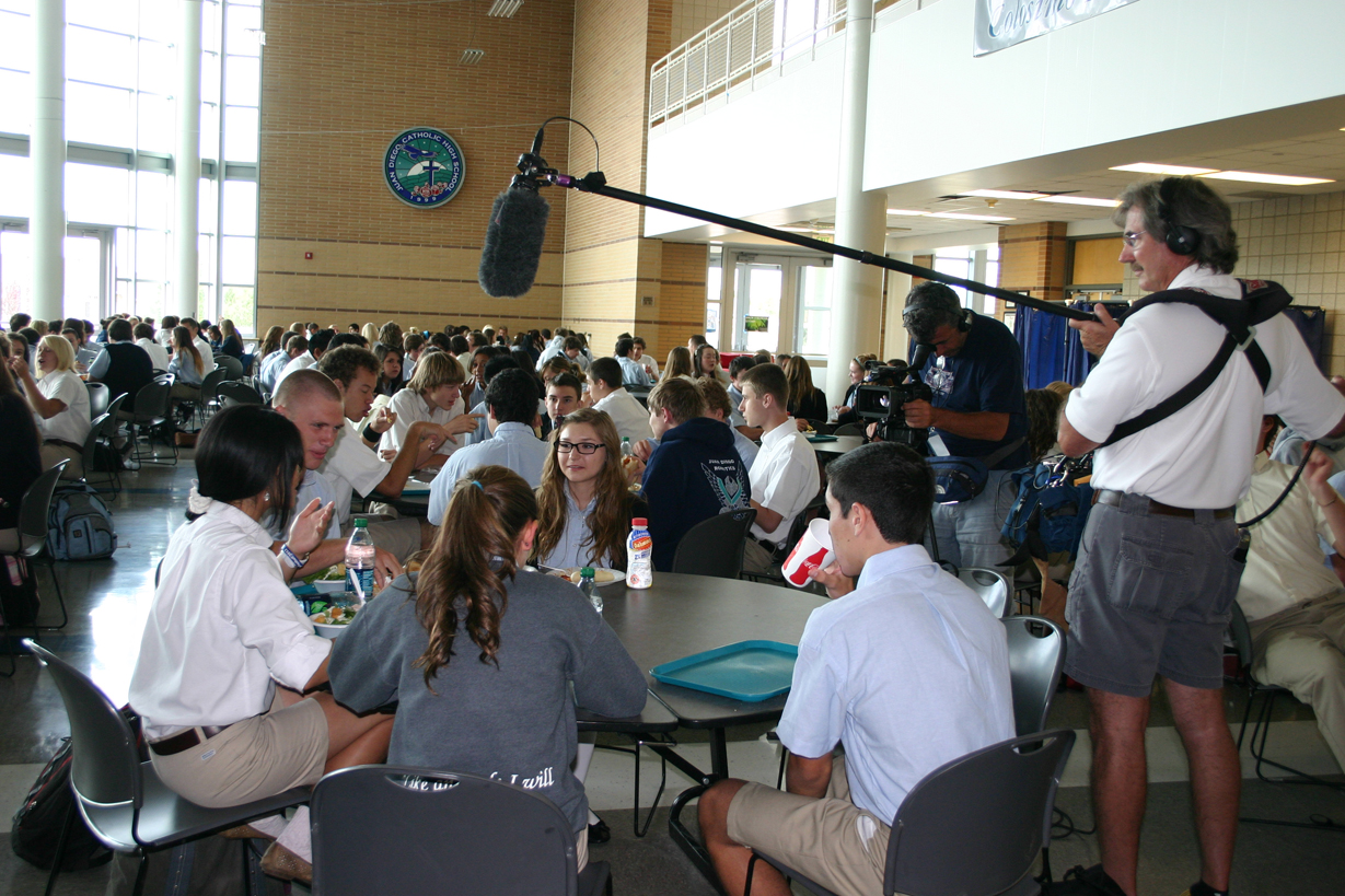 DRAPER — Planet Grande Pictures filmed a pilot documentary of the students at Juan Diego Catholic High School during the first week of school, Aug. 20-22. The concept was to capture American high school students trying to balance every-day challenges that come with being a teenager viewed through the prism of Catholicism. Planet Grande Pictures, in association with partners Octagon and Flying Kitty, began this project last spring by interviewing 90 students over a three-day period to get an idea of what was on the minds of the students. Producers wanted to present a proposal for a series to Lifetime cable network, with Juan Diego as the featured high school in eight to 10 episodes. "We have several networks that are interested in the documentary based on what we have already filmed," said John Watkin, Planet Grande Pictures director/producer and editor/cameraman. "We are going to take the material we have filmed over the last three days, cut it, show the networks and hopefully excite them to run the series." The idea came from John Cronin, Flying Kitty executive producer, who grew up Catholic and attended Catholic schools in Massachusetts. "This is the first time this has been explored," Cronin said. "It’s difficult being a teenager today, and we wanted a documentary based on the student’s point of view of how a strong faith impacts important decisions, and how a religious school and home environment alter the way they see their world and their responsibility in it." Although several shows have been set in American high schools, "what is interesting about this one is that the students deal with all the trials, tribulations and stresses of being a teenager in high school under the umbrella of the Catholic Church," Watkin said. "They have all kinds of questions about who they are, what their parents have taught them, what the Catholic Church has taught them and what they have learned from their teachers. The process has been really fascinating, watching the students confront these questions, and we have been blessed with dropping into classrooms, cheerleader sessions, hall conversations and literally following our instincts as we shoot." Although the filmmakers had a schedule, they did break away if something interesting happened in front of the cameras, he added. "It has been very exciting." This was Watkin’s first film in a Catholic setting and he was surprised at how open teachers and students were in discussing sensitive topics and how seriously the students applied themselves to everything, he said. "The standard of excellence is way above anything I’ve seen in America," he said. "Let’s put it this way – I’m not a Catholic, and I don’t live in Utah, but if I did, I’d put my kids in this school." From the original 90 students who were interviewed, a number were selected to be followed more closely for the film in their daily life at school and with friends and family. The interviews cover a wide range of subjects. "We talk about faith, their relationship with God, coping with tragedy, the pressures of school, relationships with friends, romantic relationships, conforming and rebelling and a wide area of subjects that impact the way they are living their lives," Watkin said. The school’s emphasis on the whole person and being able to pray and talk about God are issues that can’t be addressed in the public realm, said Dr. Brian Manternach, Juan Diego director of choral and vocal activities and theology teacher, who was interviewed for the documentary. "Certainly, they are not necessary to the educational experience, but we want the students to be informed about religion and curious about faith and matters of spirituality," he said. Ashley Ramos, a junior chosen to participate in the documentary, said having a camera and lights on her was a little unnatural. "I knew I was being filmed so I said and did things that I wouldn’t normally do," she said, adding that being filmed during an audition for a musical put more pressure on her. However, "Overall, the experience was fine," she said.