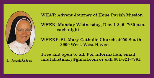 WEST HAVEN — An upcoming parish mission at Saint Mary Catholic Church will echo the theme of the Jubilee Year while focusing particularly on Advent. The theme “Advent Journey of Hope” will be examined over the three evenings in talks by Sister Joseph Andrew Bogdanowicz, OP, one of the four founders of the Dominican Sisters of Mary, Mother of the Eucharist.