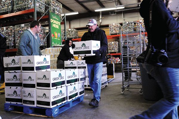 OGDEN — Three trucks rolled into Catholic Community Services’ Joyce Hansen Hall Food Bank the morning of Dec. 15, carrying 17,331 pounds of food donated by Great Salt Lake Minerals Corp. GSL’s donation was used to fill 1,800 holiday baskets that were distributed to the food bank’s clients over a three-day period that started Dec. 19. This was the fourth year that GSL has provided the food bank with holiday meal fixings. CCS gives the company a wish list of items, which guarantees that the food bank will be able to have enough stuffing, cranberries, yams and other necessities for each basket, said Marcie Valdez, director of CCS Northern Utah. Other items for the holiday baskets came from LDS Humanitarian Services, a turkey drive sponsored by United Way Northern Utah and the "Ogden Standard Examiner," and contributions from schools, businesses and individuals in the community, Valdez said. The food bank doesn’t receive any federal funds, "so everything we do … is because of the generosity of somebody else, whether it is a food donation or a cash donation or a donation of volunteer hours," Valdez said. GSL helped in this regard as well, not only arranging for delivery of the goods but also having about 35 of their employees and family members stacking the goods onto the food pantry shelves. In November, food bank staff were worried about being able to provide holiday baskets because they were told that they wouldn’t receive the usual number of turkeys from Utah Food Bank. As a result, the food bank decided to limit to 1,200 the number of Christmas baskets it would distribute. However, when the appeal for donations went out to the community, the food bank received 160,000 pounds of food, Valdez said, adding that she believes that’s the largest amount ever donated in one month. As a result, the food bank was able to give out 3,133 baskets in November – each food bank client received a regular monthly basket as well as a holiday basket. The food bank also received enough donations that it increased the number of Christmas baskets to 1,800, bringing the total to be distributed this month to 3,800 baskets, Valdez said. "That would wipe us out, to give out that much food," without the support of GSL and holiday food drives at local schools and businesses, she said. The donations have meant that "this is the first time since last January that our shelves have been full," Valdez said. "We have struggled for the last 11 months to keep enough food coming to serve the number of people that we’re helping every month." The food bank serves almost 2,000 families each month, compared to about 1,200 last year, Valdez said. Because of the increase, GSL asked each of its top venders in northern Utah to donate $1,000 for the holiday baskets; 14 responded, said Sherry Tolman, GSL spokeswoman. The additional funds not only helped provide the food but also meant a few extras, such as diapers for young families and hygiene kits for elderly food bank clients.