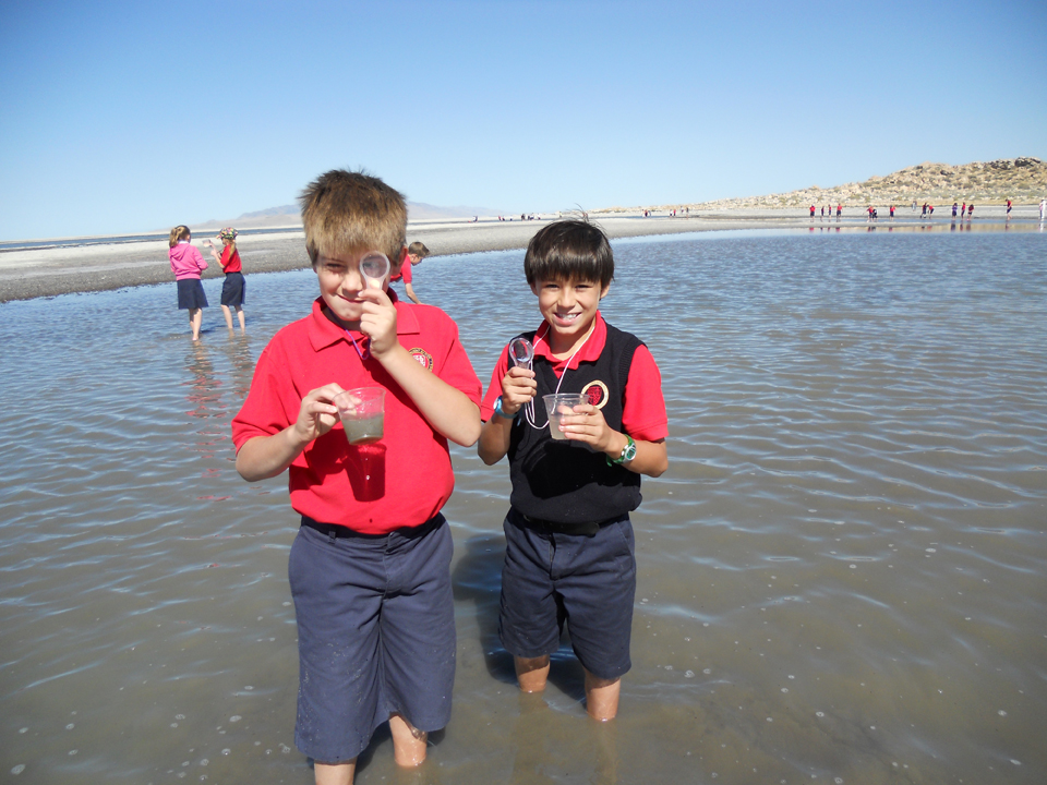 The 4th- and 5th-graders at Saint Vincent de Paul School enjoyed an field trip to the Great Salt Lake. During the field trip they learned about salt water habitat, conservation, rocks, minerals, sediments and water quality. A naturalist led the students to different areas of Antelope Island, where they got to make practical sense of an ecosystem that is right in their own backyard. They learned about geology, bird habitat, watersheds, and how ooids differ from beach sand. Each student had their own binoculars to view birds along the causeway. They also saw brine shrimp, brine flies, bison, antelope, two great horned owls and a few lizards.