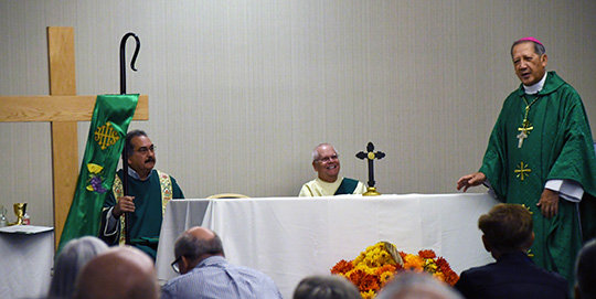 El Obispo Oscar A. Solis celebró dicha Misa. Durante sus comentarios el Obispo hablando en inglés y en español dijo que “es una gran alegría estar aquí con ustedes, mis compañeros… en la misión de la evangelización en la Diócesis de Salt Lake City,” y que estaba agradecido por que los diáconos son una parte importante de la misión de la diócesis y “están listos para proclamar el Evangelio de amor al pueblo confiado a su cuidado.”