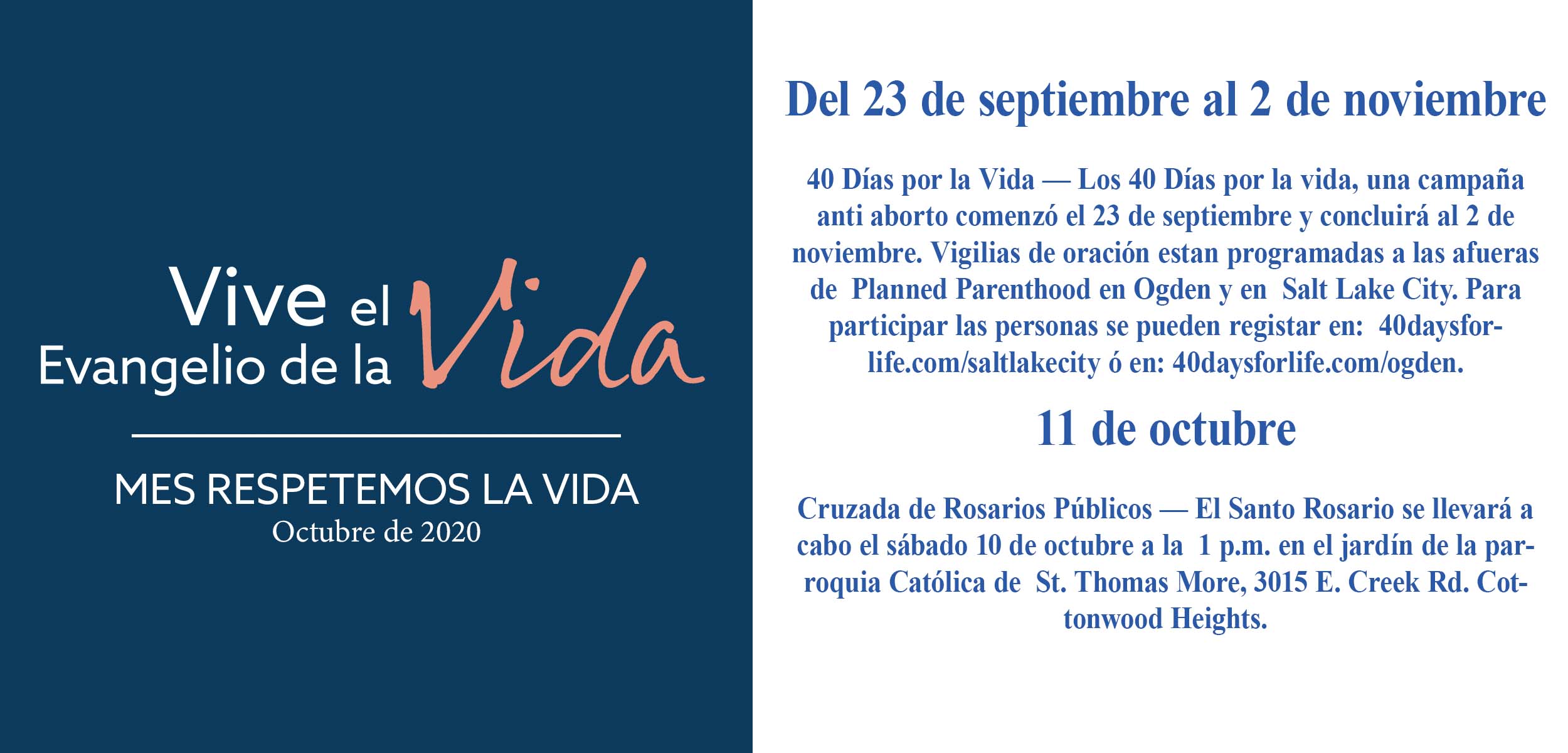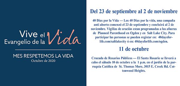 Conforme consideramos esto, nos damos cuenta de que tenemos muchas oportunidades para seguir los pasos de Cristo y ayudar a la construcción de una cultura que valore cada vida humana. Podemos unirnos a los esfuerzos de 40 Días por la Vida que se están llevando en nuestra diócesis, y orar en las afueras de una clínica la cual se realizan servicios de aborto.