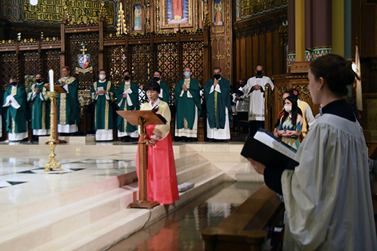 Asistiendo a la Misa se encontraron diferentes re-presentantes de las comunidades multiculturales en la diócesis, lideres diocesanos, ministros pastorales y re-presentantes parroquiales. Las lecturas fueron proclamadas en tagalo, español y en inglés. La oración de los Fieles fue leída en inglés, coreano, vietnamés, tongano y africano- varios de los lenguajes hablados en la diócesis.