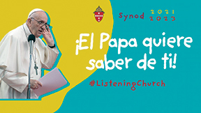 Esta imagen de la página web de la Diócesis de Raleigh anima a los Católicos de la región este de Carolina del Norte a participar en una encuesta online. La encuesta forma parte del proceso de escucha para la XVI Asamblea General Ordinaria del Sínodo de los Obispos. Originalmente programado para 2022, el sínodo tendrá lugar en octubre 2023 para permitir una consulta más amplia a nivel diocesano, nacional y regional.