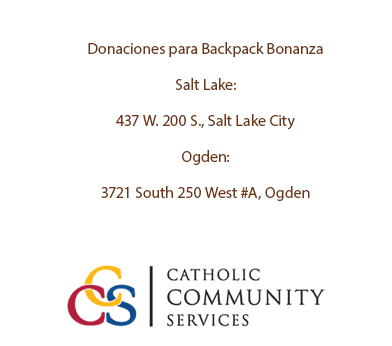 Backpack Bonanza es un esfuerzo anual realizado por CCS y por miembros de la comunidad a beneficio de los estudiantes en el área de Salt Lake y del noreste de Utah.