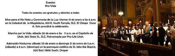 SALT LAKE CITY — Conforme la fecha para el comienzo de los 9 Días por la Vida patrocinados por la Conferencia de Obispos Católicos de los Estados Unidos se aproxima, la Diócesis de Salt Lake City esta ofreciendo varias oportunidades para que las personas participen reconociendo y protegiendo toda vida humana desde su concepción hasta su muerte natural.