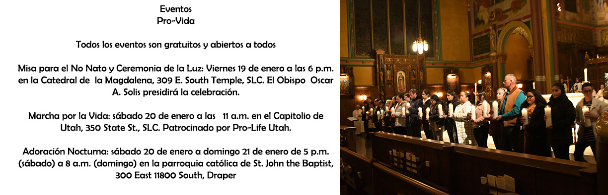 Misa para el No Nato y Ceremonia de la Luz: Viernes 19 de enero a las 6 p.m. en la Catedral de la Magdalena, 309 E. South Temple, SLC. El Obispo Oscar A. Solis presidirá la celebración.
