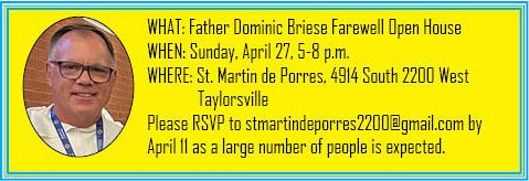 TAYLORSVILLE — Father Dominic Briese, OP, pastor of St. Martin de Porres Parish in Taylorsville, is leaving Utah, having been reassigned by his religious order.