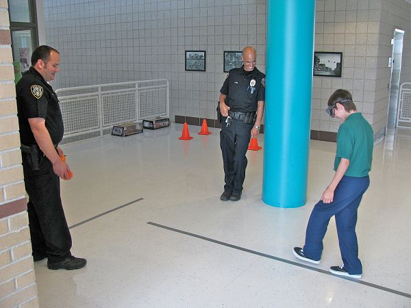 Sergeant Pat Evans from the Draper City Police Department brought the "fatal vision" goggles and allowed each student to try them out. The goggles are designed to impair the vision in a similar fashion to being under the influence of alcohol or drugs.