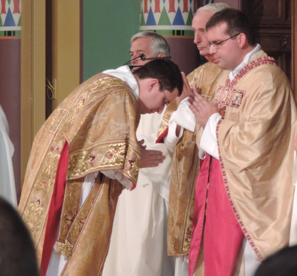 SALT LAKE CITY — The sacred music that filled the Cathedral of the Madeleine for the regular 11 a.m. Mass on June 30 was selected specifically to "do great honor to the liturgy, because this was a very solemn occasion," said Father Christopher Gray, who celebrated a Mass of Thanksgiving in honor of his ordination, which occurred the day before. "I wanted also, especially for the sake of those who came, to offer the very, very best that I know this place can offer," he added. The Cathedral Choir provided the music for the Mass. From their repertoire Fr. Gray selected pieces such as the Cantus Missae and O sacrum convivium that not only fit the liturgy but also had personal significance – he was a member of the first class of the Madeleine Choir School. With its light, color, the arts and music, the Cathedral of the Madeleine is "the unapologetic apology of the truth of Christian faith that encircles us," Fr. Gray said in his homily. "All this brightness brings us closer to the heart more than a merely ordinary place ever could. Together it is more than we can experience all at once, which is why we never tire of gathering here to worship Christ, our Lord. ... The brightness of this place is supposed to lift our minds and hearts to heaven, and it is out of desire that we are here now, and even when not here, continue to live in this light of discipleship." In his homily, he also gave thanks to the Lord for the gift of his priestly ordination, and "I give thanks to you, for following Christ with me to this point, and ask that you pray for me, very hard, that I may always follow Christ alone just as I pray the same for you," he said. "We are followers of Christ together, stronger in our bond of discipleship than we are individually. ... On our own it is easy to let ourselves be turned away from Christ, but through the mystery and the ministry of the Church, we are healed and brought closer to the true discipleship of Christ." Fr. Gray, who is bilingual, also celebrated a Thanksgiving Mass in Spanish at 3 p.m. June 30 in the Cathedral. All the weekend’s ceremonies had great significance, Fr. Gray said in an interview, but he also had time to spend with friends. "Those personal things are, of course, absolutely delightful and provide the flavor to the rest of these vast, important things which are simply too big to grapple with beforehand or afterward," he said. "This priestly ordination thing – this is for the rest of my life, so I have a nice long time to ponder [it]." Until he returns this fall to Rome to complete an advanced degree in theology, Fr. Gray will serve at the Cathedral. He said he was looking forward to celebrating Mass on July 2 at the Carmelite monastery in Holladay, at Mother Maureen Goodwin’s invitation. "That will be a lovely thing because I know they’ve been praying for me very, very much," he said.