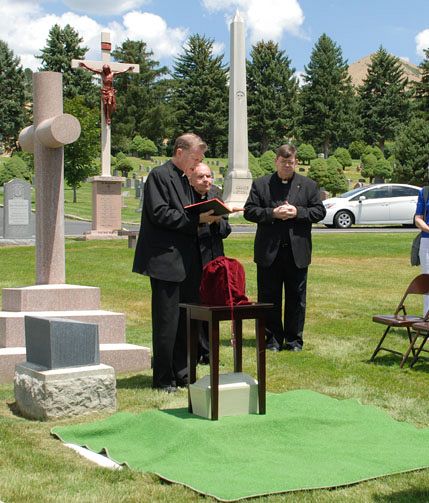The Most Rev. John C. Wester, Bishop of Salt Lake City (left), officiates at the burial of Father James A. Janda on July 15 at Mount Calvary Cemetery in Salt Lake City. Fr. Janda, who died Aug. 7, 2010, had suffered from emphysema for many years and, to assist the medical field, he donated his body to the University Medical Center for research. Fr. Janda was buried in the priests’ plot at the cemetery.