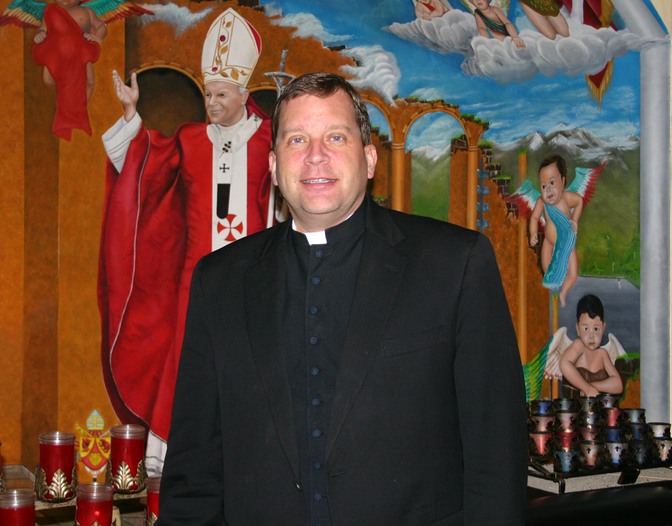 KEARNS — Father Robert Moriarty, pastor of Saint Francis Xavier Parish, will celebrate his 20th anniversary of priestly ordination June 27. He was ordained June 27, 1992 at Saint Ambrose Catholic Church; the Cathedral of the Madeleine was being renovated at the time. Fr. Moriarty was born in 1966. His first five years were spent in Kearns as a member of St. Francis Xavier Parish. He was brought up in a strong Catholic family, he said. "We became members of Saints Peter and Paul Parish in West Valley City when it first opened in 1972. We attended church every Saturday night and we never missed Mass no matter what," even on vacations, he said. "My father is a convert and strangely, with the Irish name Moriarty, you’d think he would’ve been Catholic. I just have one older brother and he’s a police officer in Taylorsville." Fr. Moriarty attended West Kearns Elementary and Kennedy Junior High schools and graduated from Kearns High School. He was majoring in biology at the University of Utah when he began to consider his options, including teaching, doing research, getting married or entering the priesthood. "I called the Diocese of Salt Lake to explore the possibility of becoming a priest and discerned the priesthood during my junior year of college," he said. "I entered Mount Angel Seminary in 1987 and finished college there. I finished seminary in 1992." His first assignment as a priest was at Saint Joseph Parish in Ogden, where he also taught biology and theology at Saint Joseph Catholic High School for two years. "I was not real happy as a teacher and asked for an assignment change," Fr. Moriarty said. "In 1994, I was sent to the Catholic University of America in Washington, D.C., for three years to pursue a canon law degree. In 1997 I started working in the diocesan Tribunal office with Monsignor John Hedderman, who was a wonderful man, very kind and generous and passionate." From 2000-2003, Fr. Moriarty was assigned to Juan Diego Catholic High School as a chaplain and theology teacher. Also during that time, he served as a chaplain for the 2002 Winter Olympics in Salt Lake City. "I was at Juan Diego when they were just getting off the ground and we were able to have all kinds of dedications for new pieces of art, special prayer services, and ceremonies like the junior class advancement ceremony when the junior class got their school rings," he said. "It was an exciting time because we made up the ceremonies as we went along because we hadn’t had them before and created all the senior class awards and the graduation ceremony for the first graduating class." In 2004, Fr. Moriarty was reassigned to St. Francis Xavier Parish, where he has been for the past eight years. In his 20 years as a priest, Fr. Moriarty has learned that people will forgive almost any fault a person has except for being unkind, he said. "For me, learning patience and kindness have been my biggest challenges as a priest." Fr. Moriarty would tell a young man discerning the priesthood to carefully consider his options and gain some life experience before pursuing his decision. For example, "going to a secular university so he doesn’t see the priesthood as an isolation from the world, but to see it as a way to become closer to the people of God," he said. "The priesthood does give a person a sense of being able to help those in need. I know that I have made a difference in people’s lives when they were vulnerable. The salvation of the sacraments brings comfort at the most important times in people’s lives." Fr. Moriarty maintains his spirituality by celebrating the sacraments and preparing homilies, he said. "I also teach the eighth-grade religion classes at St. Francis Xavier School, which helps me stay in touch with the younger generation. I also am a beekeeper and I love fly fishing." The changes he has seen in his 20 years include the overwhelming increase of the need for Hispanic ministries with the growing immigrant population, he said. "I have also witnessed the transformation of the immigrant youth embracing the English language, not to the exclusion of Spanish," he said.