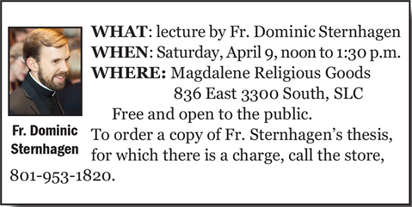 Copies of Fr. Sternhagen’s thesis may be pre-ordered. Proceeds from the sale will be donated to the Diocese of Salt Lake City Office for Vocations.