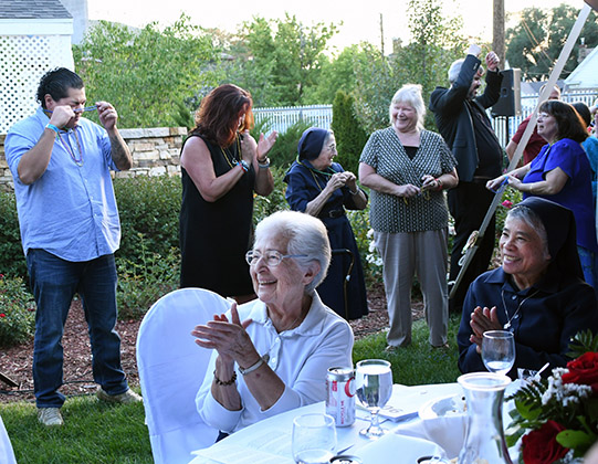 Give Me a Chance, a ministry of the Daughters of Charity that serves the Ogden area, held its only fundraiser of the year on Sept. 7. The ministry provides classes in sewing, quilting, computers and English as a Second Language for women. For children there is an after-school program that helps with academics and also offers music and art. Shown is the “Heads or Tails” game at the dinner; in the foreground are Sister Martha Garcia, DC and Sister Milagros Federico, DC. Among those playing the game are Sister Germaine Sarrazin, DC and Father Joseph Minuth, administrator of Holy Family Parish in Ogden.