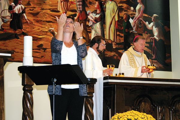 OREM — Carol Ruddell, Commission for People with Disabilities past chairwoman, was honored with the Catholics Can Award during the Catholics Can Mass at Saint Francis of Assisi Catholic Church in Orem Sept. 29. St. Francis of Assisi Church also was recognized for being fully accessible. The Mass was concelebrated by the Most Rev. John C. Wester, Bishop of Salt Lake City; Father David Bittmenn, pastor of St. Francis of Assisi Parish; and Father Peter Do, associate pastor of Saint Catherine of Siena/Newman Center. "God loves us so much that he is beside himself trying to figure out ways to communicate that love to us," said Bishop Wester in his homily. "God is closer to us than we are to ourselves." The bishop went on to say, "we all have one sort of disability or another; a limitation or weakness. It’s true, some of us have disabilities that are more noticeable than others; some cause great pain and some of us suffer very deeply. The point is these disabilities do not define us. In the eyes of God there is no such thing as a disabled human being; only a child of God. And what is asked of us is to love one another as God loves each one of us." Following communion, Kathryn Larson, a commission member, presented the Catholics Can awards. "Today we are celebrating the many skills and talents of people with disabilities within our diocese and churches that create opportunities for Catholics with disabilities to fully participate and be active members of their parishes," said Larson. St. Francis of Assisi Parish was recognized for the ramp that makes the altar accessible, its listening devices and pews that are wide enough to store walkers. "The church has no steps and is completely roll-in," said Larson. Ruddell was given the commission’s second annual award for her service in the diocese and the commission for over 20 years. "She has devoted her time both professionally and as a volunteer to those with disabilities and made it possible to have live captioning on a screen, American Sign Language interpreters for individuals who are Deaf and hard of hearing and low-gluten hosts for individuals who are gluten intolerant," said Larson. "Carol interprets at St. Vincent de Paul, St. Thomas More and St. Mary of the Assumption parishes and for various diocesan events. This ministry is her passion and she has great enthusiasm for it." This past year, Ruddell traveled to Saint Mary of the Assumption Parish to assist Nadia Suarez, who is 10, so she could receive her First Holy Communion. Ruddell attended Suarez’s religious education classes with her. "I was excited to get my First Communion; I was jumping up and down inside," said Suarez, through interpreter Mindi Allen, a St. Vincent de Paul parishioner. "My mom and dad, my godmother, and all my family were very proud of me." Suarez became Deaf when she was 2 years old. She was born at 23 weeks and weighed 1 pound. The medication she was given to keep her alive affected her hearing. Griselda Suarez, Nadia’s mother, learned about Ruddell through her daughter’s school and contacted her. "We are grateful for Carol," she said. This was the first time I’ve attended this Mass and it was beautiful." Arthur Valdez, who is Deaf and a St. Catherine of Siena/Newman Center parishioner, agreed the Mass was beautiful. "Walking into St. Francis of Assisi Church made me feel like I was at home in New Mexico with my family," he said through Allen. "It’s inspiring to see so many people and different friends."