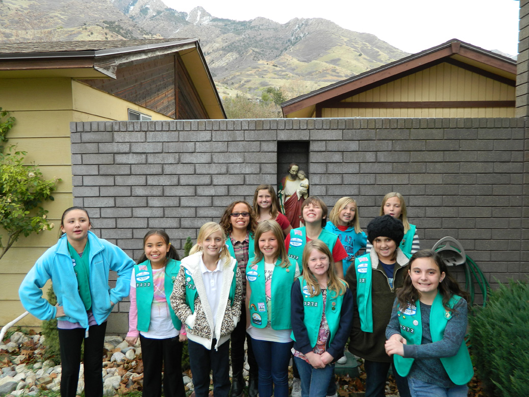SANDY — In celebration of 100 years of Girl Scouting in the United States, Blessed Sacrament Girl Scout Troop 2272 answered a challenge to either do 100 hours of service or donate 100 items to a worthy cause. Troop 2272 donated more than 100 gifts to the Discalced Carmelite Nuns of the Carmel of the Immaculate Heart of Mary Monastery in Holladay. "In the spirit of the new year, 2012, we asked our 16 Girl Scouts to bring seven items," said Celeste Diller, troop leader. "It could range from household items such food or cleaning products to personal care items like body lotion and socks. The girls donated a little bit of everything including books, wine, chocolate, crossword puzzles and toys for the dogs." Most of the scouts, who are 9- to 10-years old, attend Blessed Sacrament School. They visited the Carmelite monastery with their mothers to deliver their gifts, meet the nuns and to see how they live. "We had a beautiful visit with the Girl Scouts and enjoyed hearing about each of them," said Carmelite Mother Maureen Miller. "We appreciated them coming and would be delighted if they would like to come and visit with us again." Many of the girls had never been to a monastery before, Diller said. "It was good for them to see a simple way of life. We listened to the nuns’ stories and the girls sang songs. They asked the nuns questions and then the nuns asked the girls questions." The girls were surprised to learn several things about the nuns; for example that they wore pajamas, have pet dogs and pray the rosary daily. Alexis Dooley said she thought the monastery was huge and thought it was nice the nuns gave their lives to God. "It made me feel closer to Jesus," she said. "I asked them what they do and one of the nuns said she likes making the [Communion] hosts. I thought they were made in a factory." Kaila Bunting was inspired to become a nun after her visit. "My dad died of cancer this summer and I want to thank God for keeping my dad alive for three years," she said. "I asked the nuns to pray for my dad because I miss him and it’s only been about six months since he passed." Aspen Russell was also inspired to become a nun after her visit. "I didn’t realize they could go outside if they wanted to," she said. "I also thought it was interesting they do house hold chores. There are actually people who know them and tell them their intentions and ask for prayers. They are serious, but they laugh a lot." Kendall Neuman thought it was kind of weird the nuns were behind bars. "But it was nice they would talk to us," she said. "They asked us what we do and I told them we go to places to learn things and earn badges, and this year we are honoring 100 years of service and remembering the great women who have done the same as us." The nuns were interested in what the Girl Scouts do. Sydney Hurst told them they do service projects and have adopted a foster child this year for Christmas. The nuns all wrote thank you cards to the Girl Scouts, which they shared at their last meeting. "We had so much fun and were so excited to open each bag," said Mother Maureen, adding even the dogs had their share.