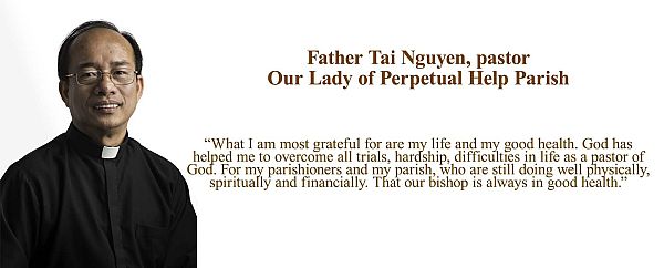 “What I am most grateful for are my life and my good health. God has helped me to overcome all trials, hardship, difficulties in life as a pastor of God. For my parishioners and my parish, who are still doing well physically, spiritually and financially. That our bishop is always in good health.”