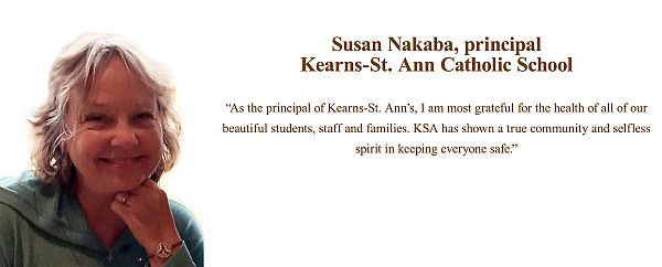 “As the principal of Kearns-St. Ann’s, I am most grateful for the health of all of our beautiful students, staff and families. KSA has shown a true community and selfless spirit in keeping everyone safe.”