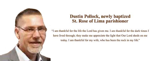 Dustin Pollock, newly baptized St. Rose of Lima parishioner