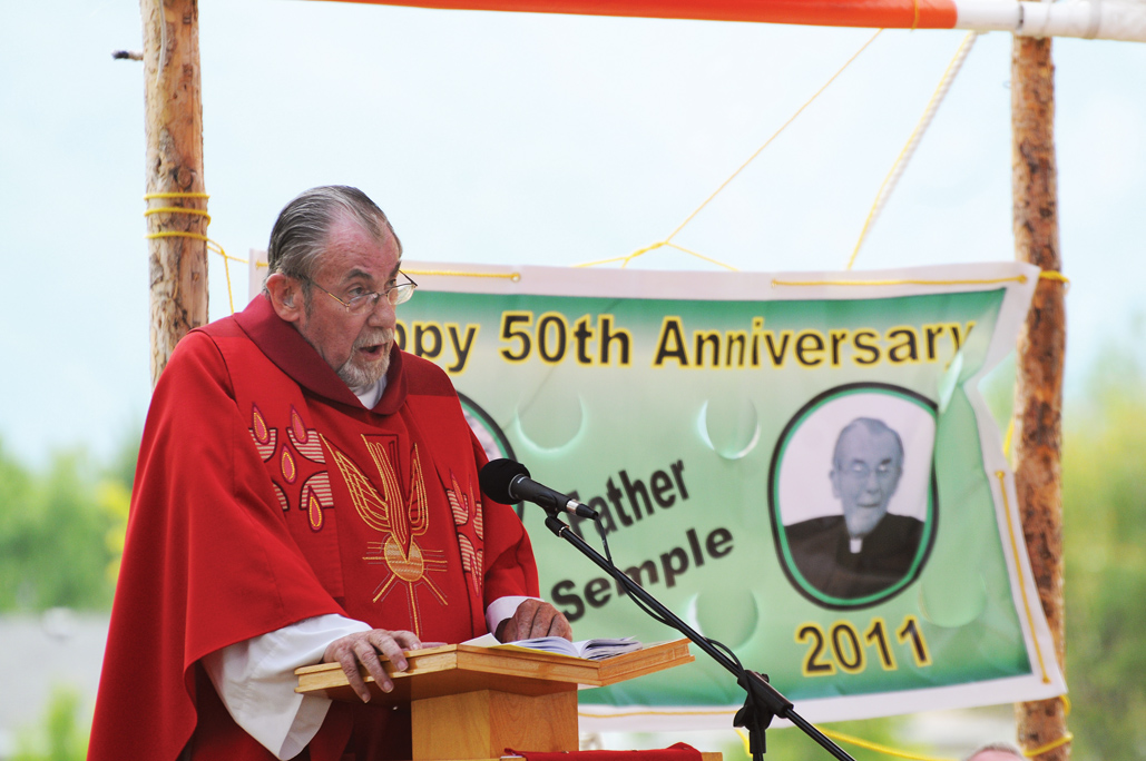 On the 50th day after Easter, on Pentecost Sunday, Saint Joseph the Worker Parish celebrated the 50th anniversary of Father James Semple’s priestly ordination. Fr. Semple is retired but assists at St. Joseph the Worker Parish. Parishioners presented him with a book of memories that included hand-written personal notes, and a commemorative plaque. "For us here at St. Joe’s … it’s a great honor for us," said Father Patrick Carley, the pastor. "It’s a very solemn and sweet and holy occasion for us, also." The celebratory gathering included Fr. Semple’s sister, who came from Ireland; and his brother, who now lives in Denver, as well as others from parishes where Fr. Semple has served within the Diocese of Salt Lake City. "It is wonderful that you come and celebrate this great day with him." Among those who attended was Bea McBride, the former director of religious education at Saint Therese of the Child Jesus Parish. Fr. Semple hired McBride; she remembers him cooking wonderful lunches for her and the parish secretary. His spirit-filled homilies also were wonderful, she said. IC photo/Marie Mischel