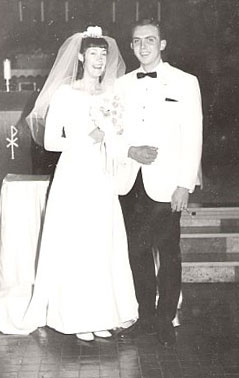 ROY — As the old saying goes, "The way to a man’s heart is through his stomach." So MaryLou had a huge advantage in this aspect since she only knew how to make 22 loafs of bread at a time. R. Blaine Buck and MaryLou lived in the same apartment complex. They met when Blaine and a friend were looking at the apartments they were to rent; MaryLou and her friend were having a water fight. They had a damp introduction. MaryLou sprayed her new neighbors instead of her friend. But the Bucks did not experience love at first sight. They knew each other for a year before they started dating. "She dated two or three of my roommates before me," said Blaine. After they went out for a year, Blaine and MaryLou, and another couple went to Park City, where Blaine was born and raised. The four of them were sitting at the table when Blaine brought out a ring and asked MaryLou to marry him. "My heart just went ‘tum, tum’," she said. They planned to get married in April, but his family could only attend to the wedding if it was during the Christmas break. They changed the wedding to December, making it all the more stressful for MaryLou. "We changed the date in October. So, in two months I had to make six dresses, while I also worked full-time," she said. MaryLou made her own dress, her mother’s, her mother-in-law’s, and her sisters’, who were her bridesmaids. Being a convert, she had to take Catechism classes. She was baptized on Christmas Eve; she had her First Communion on Christmas day, and was ready to get married on the 29th. During this time of happiness and distress, she hung a sign on her door that said "As soon as the rush is over, I’m going to have a nervous breakdown. I worked for it; I owe it to myself; and nobody is going to deprive me of it!" The wedding took place at the Cathedral of the Madeleine, and the reception was at their new home. "A lot of people went to see who got who. They thought I was going to be an old maid," said MaryLou. The Bucks say they do not understand the high rates of divorce nowadays. "Businesses don’t have loyalty. People don’t seem to have commitment on anything," said MaryLou. "A marriage is forever. Good times and bad," said the Bucks, who have faced challenges of many degrees since early in their marriage. "The people at the place where we got engaged told us we could spend our honeymoon night there for free; so we drove to Park City through the worst blizzard of the year. We got there and they had no rooms available. We had to drive back through the blizzard again and had to stay at a place two blocks away from home," she said. MaryLou also jokingly told the Intermountain Catholic she was very discouraged when she struggled to get her husband out of bed. "He could sleep for 30 hours! He had to go to work," she said. But their biggest challenge has been the addiction problems of the older of their two daughters. "We had to learn not to bail her out," said Blaine. "She’ll be all right. She has three wonderful daughters," said MaryLou, while looking at the family pictures. "No matter what you think, you’re never forgotten. I guess God is just making us stronger," she said. And with this attitude, both serve the Church in different ways. Blaine is a lector at St. Mary’s Parish in Ogden and MaryLou participates in the Baby Shower for Jesus charity program and makes blankets for needy children. The blankets are distributed in January by the Council of Catholic Women. The Bucks have endured almost 42 years of marriage and still look forward to spending time together. One of their favorite things to do is golf. "In spring 2006, we had a 26 day road trip to Georgia. We golfed 19 out of the 26 days," said Blaine. "We’re both bad," said MaryLou. "But it keeps us active."
