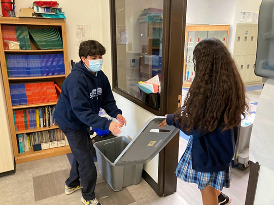The National Junior Honor Society at St. Andrew’s Catholic School has launched a Green Initiative to integrate more earth-conscious acts into the lives of the students. The initiative has three phases: revamping the existing recycling system, education, and growing plants in a greenhouse. The first phase began at the start of the second quarter of the school year. The students introduced new recycling bins, are specially designed for paper waste, into each classroom of the K-8 school. Each Wednesday, teams of NJHS collect the bins and recycle the contents. This first phase is to make the little decisions of recycling paper more visual and efficient. For the second phase of the Green Initiative, education, each member of NJHS volunteered to teach the tenets of caring for the earth with daily actions to classes throughout St. Andrew’s. The students will share information about the 3 Rs: Reduce, Reuse and Recycle, as well as the importance of making the little daily decisions count, and how the school community can practice healthy dominion over God’s Creation by choosing to protect and preserve it for future generations. The final phase of the Green Initiative will begin in the fourth quarter, when students will begin growing plants in a greenhouse that will eventually be sold to fund further action. The students in NJHS are introducing incremental change that will bear ripple effects that touch each member of the school community, stimulating a much larger change.