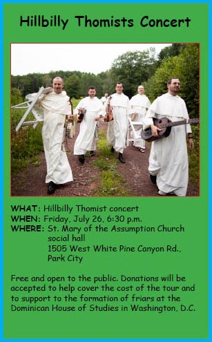 PARK CITY — Utahns will have the opportunity to enjoy Bluegrass music in a unique location and from a unique source on July 26. The Hillbilly Thomists, a band of friars of the Order of Preachers (Dominicans), will perform that evening at the St. Mary of the Assumption Catholic Church social hall.