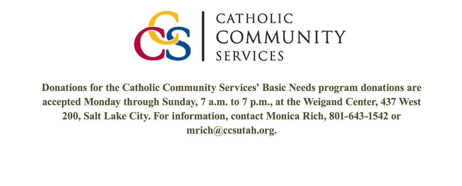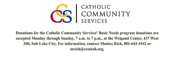 CCS also will partner with the Utah Knights of Columbus for the annual Coats for Kids program. Donations of new coats and other winter clothing for this program are being accepted at local parishes.
