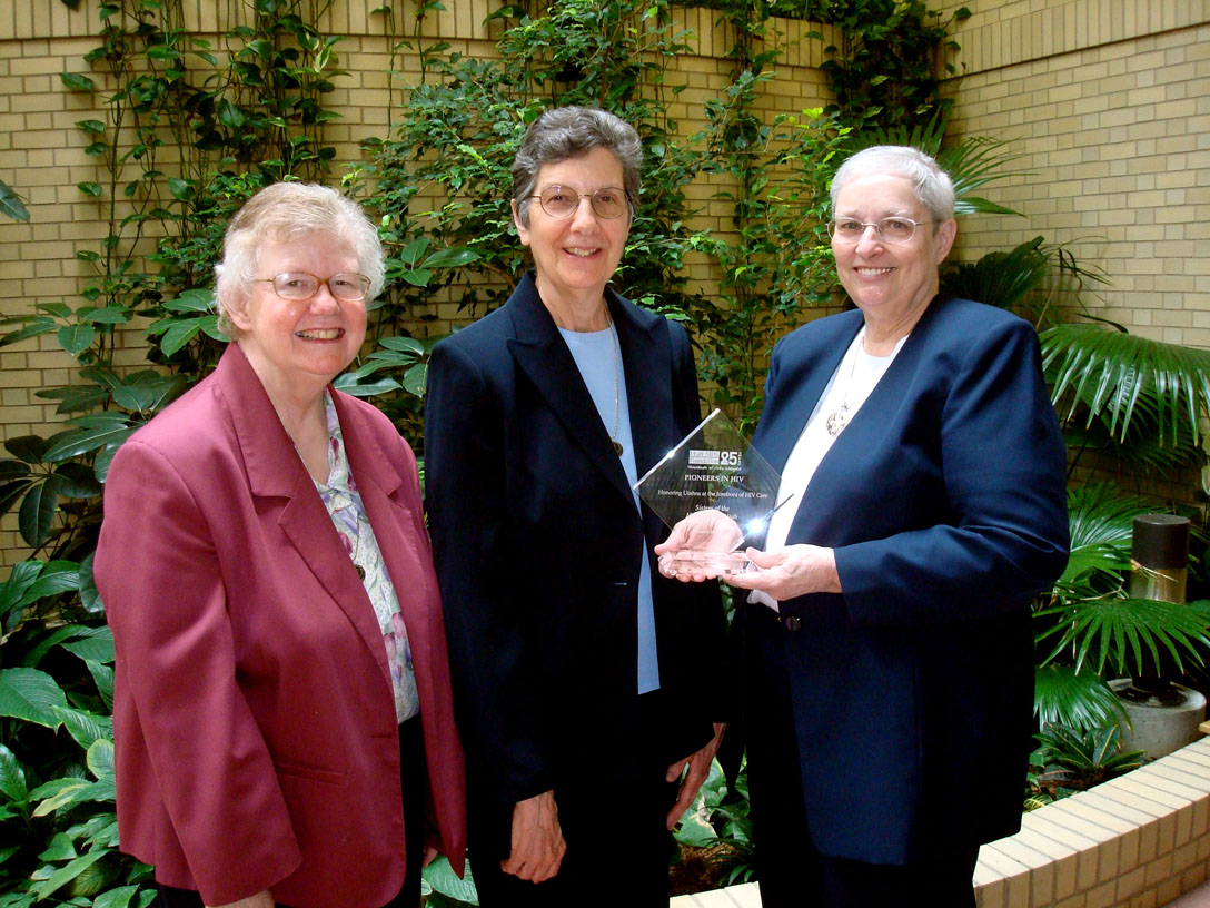 Notre Dame, Ind. (Holy Cross Ministries) – Nine Sisters of the Holy Cross were among the 400 people who attended the Utah AIDS Foundation’s March 29 event that honored the congregation as one of the state’s "Pioneers in HIV." The congregation was recognized as the first to admit and care for AIDS patients at its Holy Cross Hospital in Salt Lake City. Holy Cross Sister Linda Bellemore, who developed a comprehensive care program for those with HIV/AIDS, accepted the honor on behalf of the congregation on March 29 in Salt Lake City. This Holy Cross Hospital program provided basic assistance with housing, food, education, emotional and medical support, funeral planning, crisis intervention and transportation. It was an outreach effort nurtured and supported by Holy Cross Sister Olivia Marie Hutcheson, then the vice president for mission at Holy Cross Hospital. Others recognized by the Utah AIDS Foundation were Dr. Kristen Ries, the first clinician to treat AIDS patients in Utah; Dr. James Mason, a former director of the Centers for Disease Control and Prevention in Atlanta, Georgia, who gave the decision to allow AIDS patient Ryan White to attend school; and Sen. Orrin Hatch, who with Sen. Edward Kennedy co-sponsored the Ryan White Care Act, the first federally funded program for HIV/AIDS. Sr. Linda, a nurse, recalled how she became involved in caring for those with AIDS in 1987. "I went to Holy Cross Hospital in Salt Lake City knowing that there was tentative planning for an outreach program for the elderly. However, I was asked to provide these same services for a group with even greater needs, people with AIDS," she said. The change in ministry focus did not concern her. "If this was the need, my answer was yes," she explained. "It is part of who I am as a Sister of the Holy Cross. We are committed to responding to the particular needs of people wherever we are." In the mid- to late-1980s, the HIV/AIDS crisis was just beginning. "I knew very little about HIV/AIDS but figured that those living with it could teach me," said Sr. Linda, who spent six years in ministry to persons with this disease. "The people who came into my life during that time left deep footprints on my heart and became part of the fabric of my life. It was the most blessed time of my many years in various ministries," she said. "I learned so much: to listen to what would give their lives meaning that particular day, to keep an open mind and space in my heart, to value direct, open, honest communication, and to be part of a team of committed caregivers who could make all the difference in the world to people with HIV/AIDS." Today, the Sisters of the Holy Cross continue to reach out to those with HIV/AIDS, particularly in the Washington, D.C., area, as well as in other parts of the United States, and in Uganda through the Holy Cross Family Centre Health Unit in Kirinda. A multifaceted health center recognized by the government of Uganda, the Holy Cross Family Centre Health Unit provides outpatient, maternity and postnatal care for all who come to the center, as well as outreach services in the adjacent villages, including immunizations and AIDS counseling.