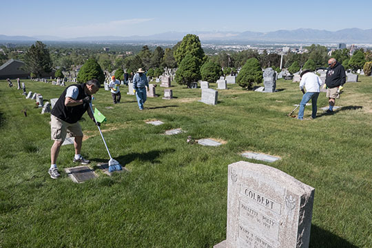 On May 22, members of the Knights of Columbus 4th Degree Msgr. Robert Pollock Assembly 3586 had their annual cleanup of veterans’ graves at Mt. Calvary Catholic Cemetery. Eleven Knights worked to make the graves of these veterans more presentable for Memorial Day. Bishop Oscar A. Solis will celebrate Mass on Memorial Day, May 31, at 9 a.m. at the cemetery, 275 U St., Salt Lake City. In case of inclement weather, the Mass will be moved to 10 a.m. at the Cathedral of the Madeleine, 309 E. South Temple, Salt Lake City.