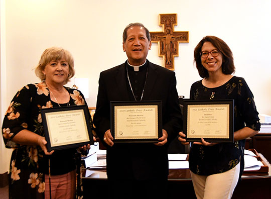 In the 2021 Catholic Press Awards, presented by the Catholic Media Association, the Intermountain Catholic received two honors. Jean Hill took third place in the Best Regular Column category for her monthly column “For the Least of My Brethren.” In addition, Bishop Oscar A. Solis and Linda Petersen were given honorable mention in the Best Coverage of Pro-life Issues category.