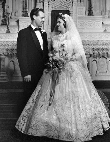 OGDEN — "When Jim came back from Korea, I was engaged to one of his friends, George," Carolyn Wold said. "Another friend introduced us, and it just seemed right." The Wolds were married at St. Joseph Catholic Church in Ogden, Nov. 6, 1954 by Msgr. Patrick Kennedy. In the 1950s, it was not customary for a marriage between a Catholic and a non-Catholic to take place in the church's sanctuary, so Carolyn and Jim were prepared to be married somewhere else in the church. "But Msgr. Kennedy looked at me and said, ?Who's the boss here?' So we were married in the sanctuary, and it was beautiful," said Carolyn. They renewed their wedding vows on their 50th anniversary in 2004. The Wold's mixed marriage was well accepted by everyone who knew the couple. Carolyn's father had not been a Catholic, "but we always had priests at our dinner table," she said. Carolyn entered St. Benedict's School of Nursing right out of high school, and Jim would go into police work, eventually becoming South Ogden's chief of police, serving for 30 years. Today he is recovering from total hip replacement surgery. "We waited to get married until I got out of school because in those days, women who were married were not allowed to study nursing," Carolyn said. "The training was very strict. It was at a time when the student nurses did all the hard work, but the school turned out great nurses." Carolyn went on to work in the orthopedic and polio departments of St. Benedict's Hospital and would become the first head of a nursing department who was not a sister. While Jim took further police training, Carolyn worked in the operating room for a year, then moved to the Ogden Clinic for five years. Carolyn spent 30 years in nursing at McKay-Dee Hospital, having earned her Master's Degree in nursing administration in 1983. She retired from nursing in 1994, but spent two semesters as an adjunct professor of nursing at Weber State College (now Weber State University). Service to others has been a hallmark of the Wold marriage. Their union has also had its particular trials. Their oldest child, their daughter Carolyn "Skeeter" suffers from multiple sclerosis, and Jim and Carolyn are responsible for much of her care. "Jim has always been very wise," Carolyn said in an interview with the Intermountain Catholic. "We've always tried to be there for our children when they needed advice, but they have not always been open to advice." Carolyn said their daughter once complained she would be the last virgin left in town if she kept listening to her parents. "And I said, ?Then that's the way it's going to be.'" A devout Catholic, Carolyn said it has been hard to watch their children choose civil marriages over church marriages, but one son and daughter-in-law have chosen to be married in the church. "And I said, ?Thank you, God,'" said Carolyn. "Every marriage has heartbreaking times," she said. "It's important when those times come, you don't waste time blaming each other. When we realized we hadn't done enough talking with Jim Jr., about issues like sex and money, we made sure we talked more with Paul. "If I could say anything to couples planning to get married it would be ?keep talking to each other and to your children,'" she said. Carolyn said the 1960s were not kind years for the institution of marriage. "There was all that talk of free love, and a lot of sex without commitment. It seemed like young people were partying all the time." Today, she said, when she looks at the generations from which their 11 grandchildren and three great-grandchildren come, "there aren't many role models of long, happy marriages." "We always tried to do a lot with our children," she said. "No matter what was going on in our lives or theirs, we always tried to sit down together for Sunday dinner." Carolyn describes the double responsibilities of marriage and raising children as "a tricky balance of emotion and reason," which she entrusts to prayer. "St. Monica and St. Rita and I are good friends," she said, smiling. "You have to have faith, and you can't marry a person thinking you're going to change them. Any time two people from two different environments come together, there are going to be clashes, and by the time children come along, it helps if you've learned to back each other up." Carolyn said giving children and grandchildren advice is not always the best way to go. "They have to see how you live. Children make decisions for their lives based on what they see you do. So, whatever you're doing, do it well, and teach them to compromise. Teach them, too, to keep loving, no matter what."