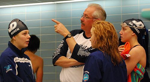 DRAPER — John Moran was named the 2012 Girls Swimming and Diving Coach of the Year by the Utah High School Activities Association. Moran is the Juan Diego Catholic High School girls and boys swim coach. This award is the Utah High School Activities Association’s "way of thanking a coach on behalf of the many lives he or she has touched," said Robert Cuff, Utah High School Activities Association executive director in a Sept. 28, letter announcing the honor. The letter also said that "Moran exemplifies the highest standards of sportsmanship, ethical conduct and moral character and … he is a coach who enjoys success in his sport, but more importantly, he models positive behavior for his athletes to follow." The award is sponsored in part by the National Federation of State High School Associations. Moran is now the national Utah high school representative in girls swimming. "This is a big honor and a national recognition for John," said Chris Long, Juan Diego’s athletic director. "Just like all of our coaches, John puts in an extraordinary amount of time with the kids. He works with all levels of kids and takes some that aren’t necessarily gifted and makes them into good swimmers, which is the mark of a good coach. He is dedicated to the mission of the Skaggs Catholic Center and Catholic education in general, and he is in it for all the right reasons." Moran was also awarded the 3A girls Coach of the Year by a vote of his peers following the 2011 state championship at Brigham Young University. Moran, a graduate of Springfield College in Massachusetts, has been the coach at Juan Diego for the past 12 years. He is also Juan Diego’s director of Special Events and chairs the Skaggs Catholic Center Youth Activities Association. The honor caught Moran by surprise, he said. "Swimming is a unique sport where there is more individual accountability than other sports might have," Moran said. "The kids are more in control of their own fate, but as a coach I am able to create an environment that allows them to set goals and to be able to understand deferred gratification where we work hard all year for something that is at the end of the season. I think, in a unique way, it helps foster self-esteem in the student because he or she is given a road map for success and for achievement. When they achieve at whatever level they might be at, they celebrate a feeling of self-worth." Students put in an incredible amount of time into swimming, Moran said. The Soaring Eagle team averages 35,000 yards a week and they swim off campus at the Life Center in Sandy. "We swim six times a week, and two days a week we do dry land exercises such as speed work and weight training," Moran said. "They see me giving that time commitment to them, but at the same time, they are spending that much time because they really want to make a difference in what they are trying to achieve and a payoff in their desired results. One thing that is unique about Juan Diego is we don’t get many kids who have been swimmers before they came to the school, and we’re able to develop them into swimmers." That work has paid off: Last year, the girls freestyle relay teams set two state records and won state championships, with Kelsey Leeson, Class of 2012, taking two individual gold medals.