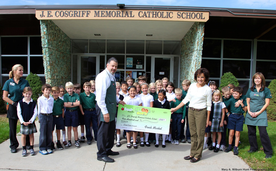 In return for this gracious support, we sell Fresh Market scrip cards at Cosgriff and inform our families about the ways in which Fresh Market helps our school so that when they shop, Fresh Market is forefront in their minds. We advertise for the store in all of our publications, at all of our fundraising and school-wide events, and add their name to all advertising materials for events.