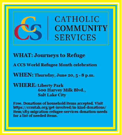 The event, which will be held June 20 at Liberty Park (east side) from 5 to 8 p.m., will feature interactive stories of five of the agency’s clients. Exhibits also will highlight some of the areas Utah refugees come from, including Afghanistan, Ukraine, the Democratic Republic of Congo and Central America.