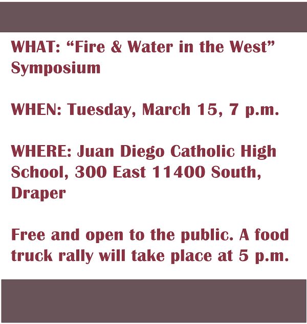 Out of that conviction was born “Fire & Water in the West,” a Skaggs Science Symposium, which will be held March 15 in the JDCHS auditorium. Colosimo and Alex hope the symposium will raise awareness about the problems faced in the Intermountain West and open the door for more such events to educate students and the public on what can be done about them, Alex said.