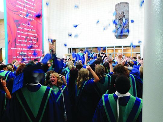Juan Diego seniors celebrate after their May 25 commencement exercises. IC photo/Laura Vallejo