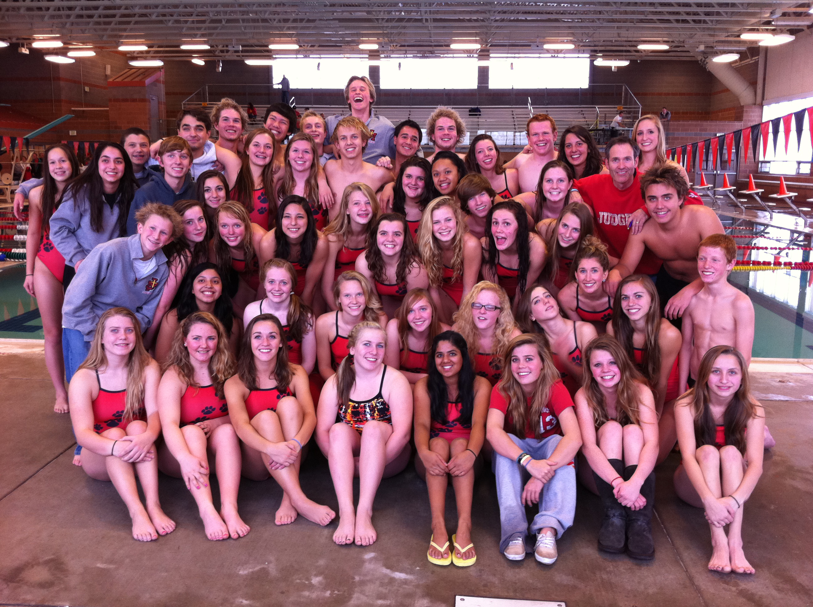 The Judge Memorial Catholic High School girls swim team captured the 2012 UHSAA 3A State Championship on Feb. 4. It is the team's fourth consecutive championship, and their ninth state title in 10 years. Standouts in the championship were the 200 medley relay of Amelia Wolfgramm, Kaley Banyai, Alandra McDowell and Allison Witte, who won their event. Wolfgramm also was the state champion in the 100 freestyle and the 100 backstroke. Other top individual finishers for the girls were Erica Azad (fifth, 100-yd backstroke), Kaley Banyai (fourth, 100-yd IM; fifth, 100-yd butterfly), Marisa Bush (fourth, 50-yd free), Cassandra Cokl (sixth, 500-yd free), Alandra McDowell (fourth, 500-yd free), Emileeann Moran (sixth, 100-yd free), Marcela Vasquez (sixth, 100-yd breaststroke) and Allison Witte (third, 200-yd IM; second, 100-yd butterfly). The 400 freestyle relay team finished in second and the 200 freestyle relay took fourth. On the boys' side, the team finished in third, behind Park City and Wasatch. Top individual finishers for the boys were Seamus Appel (fifth, 500-yd free; sixth, 200-yd free), Parker Beckett (fifth, 100-yd butterfly), and Dillon Beckett, with a second place finish in the 200-yd IM. The boys' 400-yd free relay team had a second-place finish and the 200-yd free relay team came in third. Story courtesy of Judge Memorial Catholic High School.