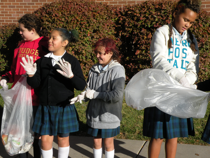 SALT LAKE CITY — While most 9- and 10-year-olds were focused on costumes, candy and parties for Halloween, the 4th- and 5th-graders at Kearns-Saint Ann School had other activities on their agendas. The good witches and wonderful wizards of Kearns-Saint Ann School grabbed their brooms and worked their magic cleaning up the playground, sidewalks and yards around their school and Saint Ann Church. Wearing gloves and celebrating "Wacky Hair Day," they began to dissect each area of their environment and filled their many bags with leaves and litter. These 4th- and 5th-graders provided visual treats of a cleaned up community as they worked their magic tricks.