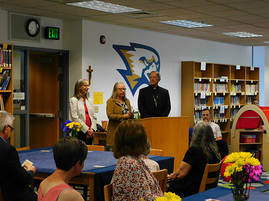 SALT LAKE CITY — The grand reopening of the Kearns-St. Ann School library was celebrated on May 31 with a blessing by Bishop Oscar A. Solis and a reception.
