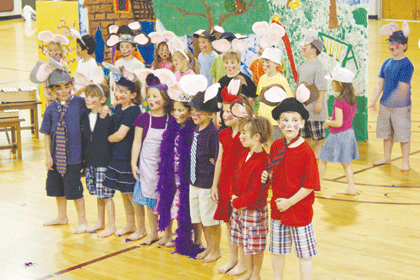 SALT LAKE CITY — Once upon a time, there were two best friends, Chester and Wilson, who would do everything together all year long, from summer to fall to winter to spring. They were two peas in a pod and enjoyed their daily routine. That is until Lilly moved into the neighborhood! Lilly was an exuberant and loud girl who loved to dress in disguise. Chester and Wilson rejected Lilly despite her willingness to be friends. But one day, Chester and Wilson were harassed by some bullies and Lilly came to their rescue, so the two buddies decided to accept Lilly’s friendship. The trio discovered each one of them had a mind of his or her own but also have much in common with each other. They would do everything together all year long… Until Victor moved into the neighborhood! This is the synthesized version of the St. Vincent de Paul Kindergarten class opera titled Chester’s Way – based on the story by Kevin Henkes–, which by no means could reflect the students’ hard work and talent during their performance in the school’s gym April 30. They wrote their own libretto (script), for which they had to have a clear understanding of the story, helped Jolene Clarke, Utah Symphony & Opera composer and vocal coach, develop the music, collaborated with Choreographer Michelle Armstrong, painted the set, and helped make the costumes and props. This is the seventh year the school has partnered with the Utah Symphony & Opera to provide opera lessons to the kindergarten students, said Mark Longe, principal. Utah Symphony & Opera also provides the school with training and support from professional artists. "(The project) is a combination of all different curriculum areas such as art, reading, dance, and music," said Mary Williams, kindergarten teacher and producer/director of the opera. In the process of creating an opera, the students may develop their artistic talents among other skills. "They work on their language skills, and it often helps them with their life skills. They learn there are different ways of doing things and learn to be collaborative," said Paula Fowler, Utah Symphony & Opera director of education and community outreach. So kids learned, just like their opera’s main characters, that although each one of them is different, they can make adjustments to include everyone. "Some children don’t have the chance to shine until they participate in something like this," said Williams. As he introduced the opera to the audience, Longe thanked the Utah Opera for helping the school underwrite the program and commemorated Williams, the artistic staff, and parent volunteers for the time and effort they put to make the program and the production of the opera a success. "It’s not an easy task to work with 30 children," he said. Williams agreed, but said it helped to break the students into groups. "While some were writing, others were working on their singing skills," she said. "And we had lots of volunteers." The audience was very pleased with the kindergarten students’ performance. "It was really cute. I am always impressed as a parent by the nice things they do here," said Erin Poche, who is looking forward to having her pre-k students perform next year. At the end of the performance, parents, pre-k students, and students from Oakridge Elementary School clapped and shouted "Bravo" to show their appreciation for the production.