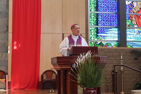 After the Liturgy of the Word, Bishop Solis explained the four characteristics of the Church as expressed in the Nicene Creed: “One, holy, Catholic and apostolic.”